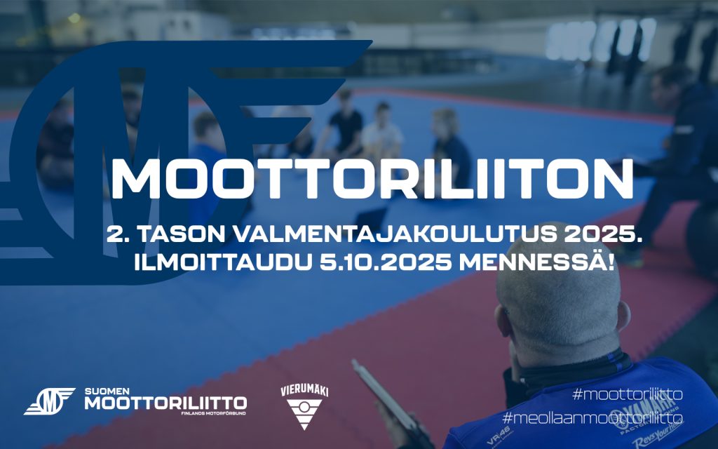 Moottoriliiton valmentajakoulutukset jatkuvat Vierumäellä. Haku 2. tason valmentajakoulutukseen on avoinna. Haku päättyy 5.10.2025. Lajiliittojen koulutukset etenevät järjestyksessä. Kakkostason koulutuksen edellytyksenä on ykköstason koulutuksen suorittaminen tai vastaavan osaamisen todentaminen.