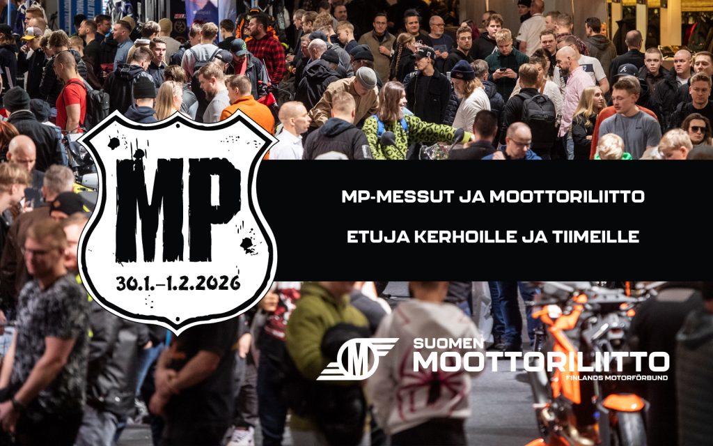 MP-Messut pidetään taas alkuvuodesta 30.1.–1.2.2026. Moottoriliitto mukana menossa ja yhteistyössä MP-Messujen kanssa haluamme kertoa teille eduista jäsenkerhoille ja tiimeille!