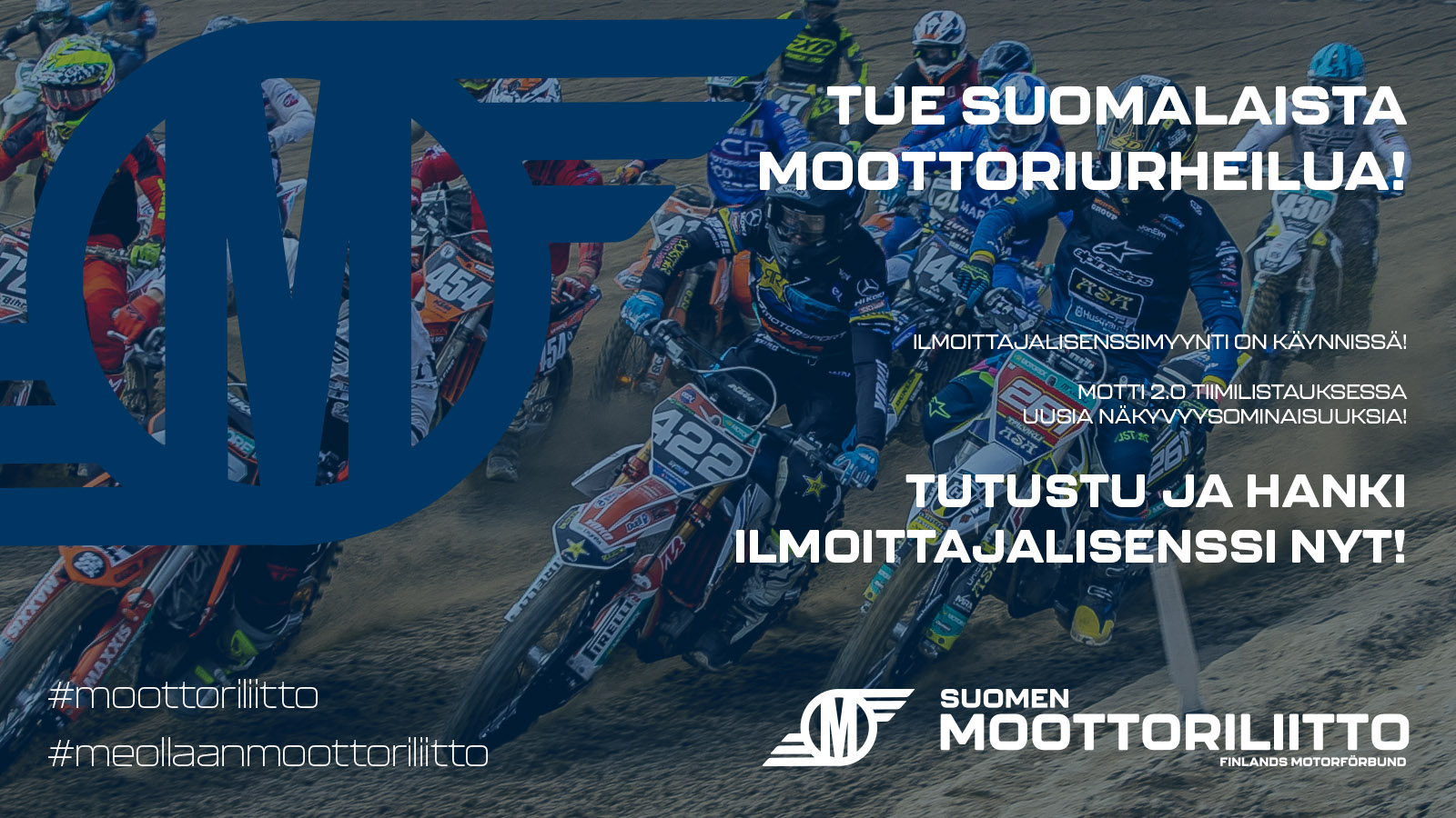Ilmoittajalisenssimyynti kaudelle 2026Vuosi 2025 alkaa olla lopuillaan ja on aika kääntää katseet kohti vuotta 2026. Moottoriliiton Motti 2.0 -palvelu on otettu käyttöön ja sen ominaisuuksia otetaan käyttöön asteittain vuoden 2026 aikana. Ilmoittajalisenssilistaukset ovat uudistuneet.