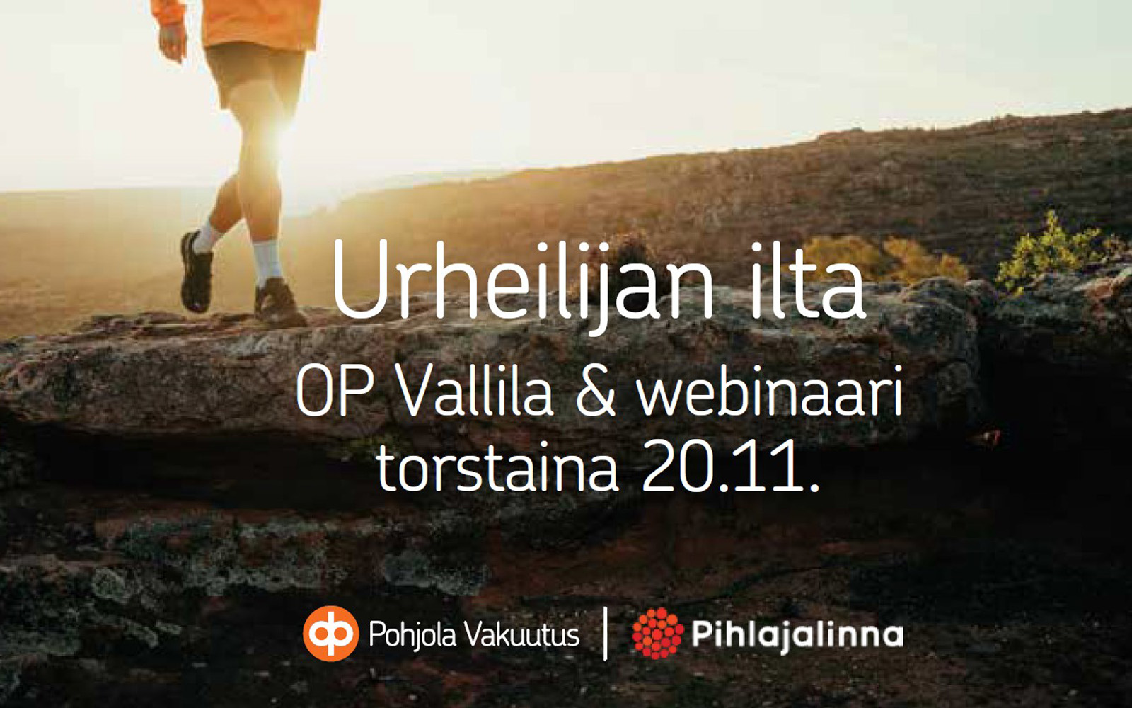 Urheilijan ilta webinaari torstaina 20.11.Urheilijan ilta on Pihlajalinnan ja Pohjola Vakuutuksen järjestämä asiantuntijaseminaari, jota tähdittävät mm. Grand Slam voittaja Harri Heliövaara, Naisleijonien valmentaja Saara Kivenmäki sekä Gilla FC:ssä pelaavat vaikuttajat Roope Rannisto ja Jason Nikkinen.
